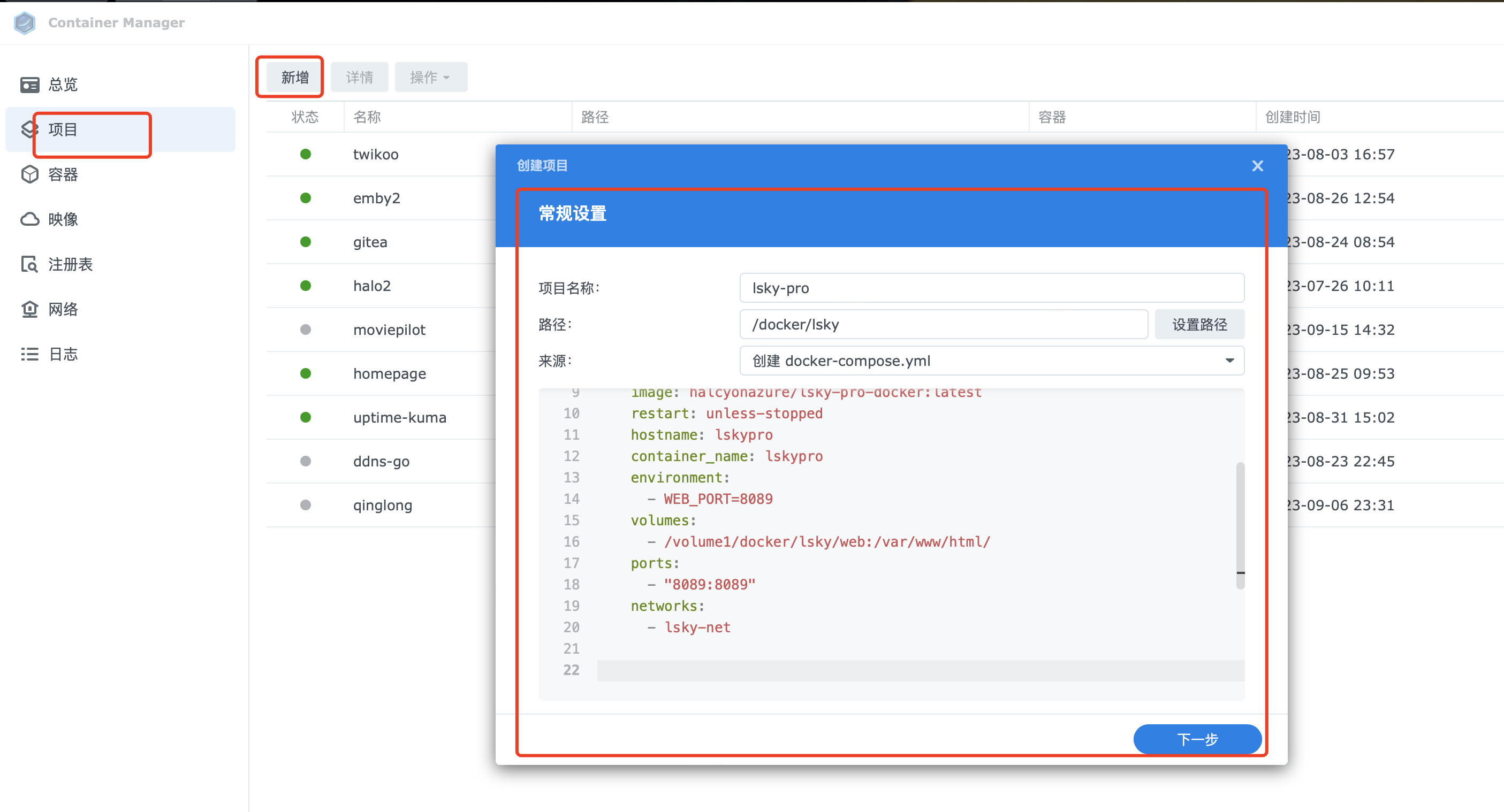 因为我本地有自建的数据库服务,为了便于统一管理,部署lsky-pro的时候就没有再重新使用数据库镜像,而是在本地数据库中新建了一个“lsky-pro”的数据库用于存放lsky-pro服务的相关数据