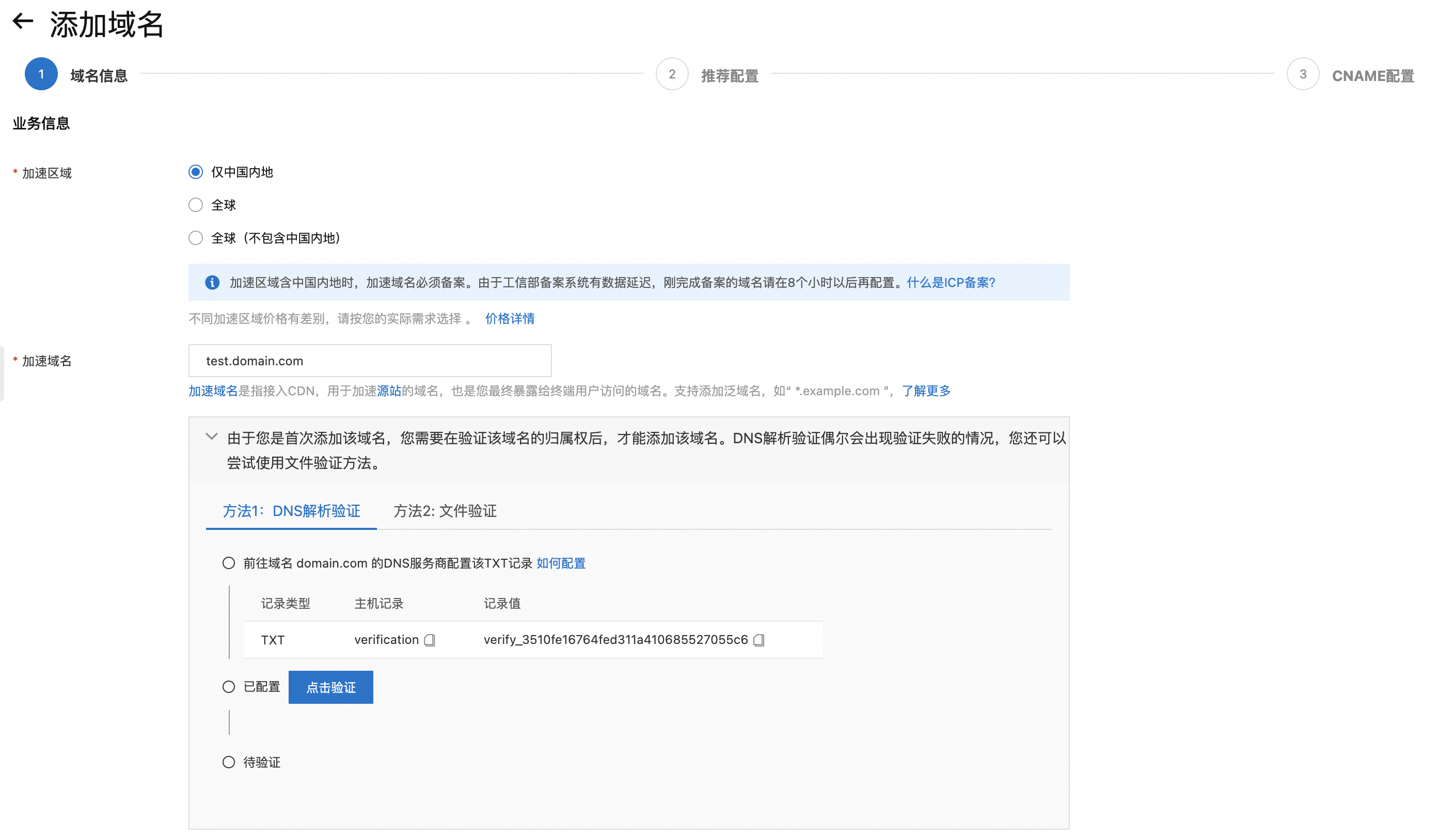 点击添加域名